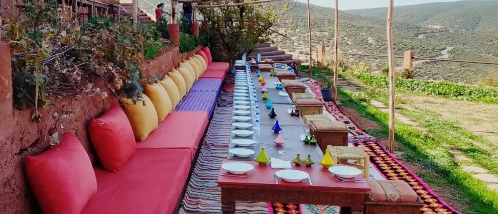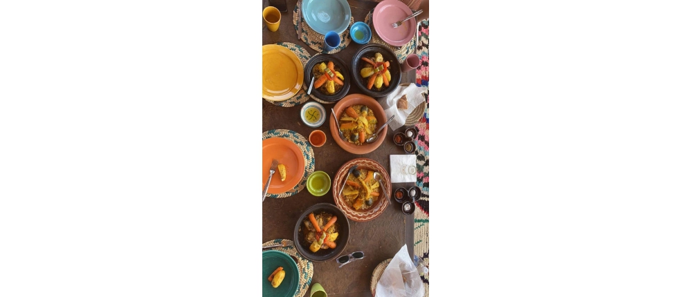 - Déjeuner chez l’habitant hors boissons (à titre indicatif) : Salade marocaine, Tajine du jour, Dessert du jour