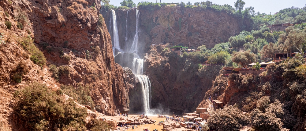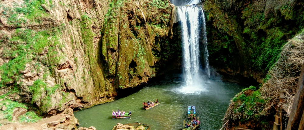 Situées à 155 km au nord-est de Marrakech dans le Moyen Atlas à 1060 mètres d’altitude, les Cascades d’Ouzoud sont les plus belles et les plus hautes d’Afrique du Nord, D’une hauteur de 110 mètres, elles dominent une nature sauvage faite d’amandiers, d’olivier, de figuiers, et autres caroubiers.